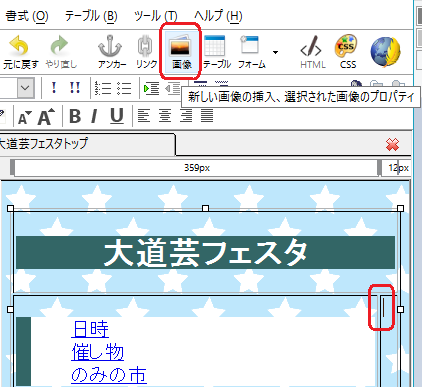 - 代替テキストの欄に、大道芸フェスタの写真 と入力します。